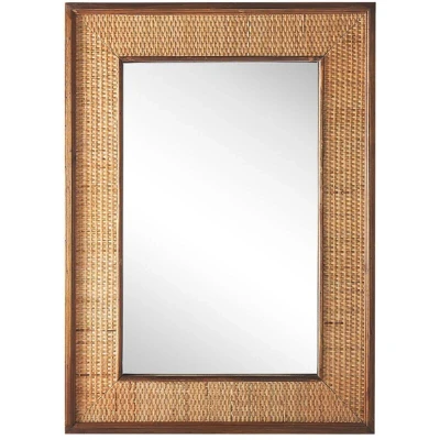 Beliani Rectangular Wall Mirror Light Wooden Frame 54 x 74 cm Bamboo Basket Weave Iguala