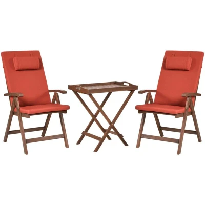 Beliani Rustic Garden Bistro Balcony Set Natural Solid Acacia Table 2 Chairs Folding with Red Cushions Amantea Premium