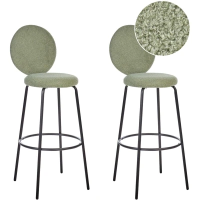 Beliani Set of 2 Bar Stools Boucle Steel Black Legs with Round Backrest Dining Room Green Emery