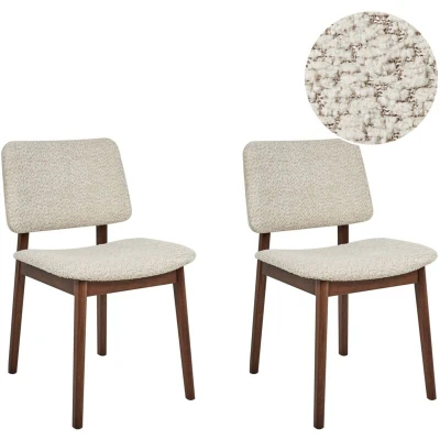 Beliani Set of 2 Dining Chairs Beige Boucle Polyester Seat Dark Wood Frame Blane