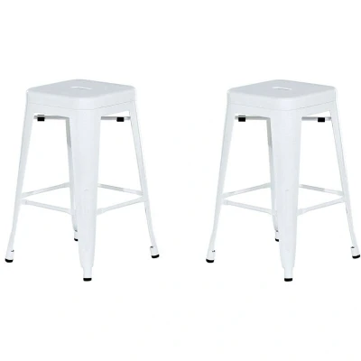Beliani Set of 2 Modern Dining Room Living Steel Bar Stools 60 cm White Cabrillo