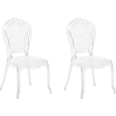 Beliani Set of 2 Modern Transparent Dining Chairs Clear Acrylic Stackable Vermont