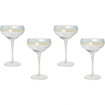 Beliani Set of 4 Champagne Saucers Coupes Hand Blown 30 cl 11 oz Iridescent Finish Morganite