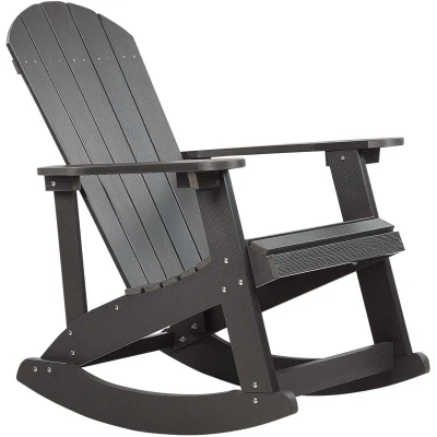 Beliani Traditional Garden Lounge Rocking Chair Slatted Design Indoor Outdoor Dark Grey Adirondack