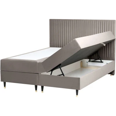 Glamour Style Divan Bed with Storage. This sleek and practical box spring bed features an elegant, minimalistic design that complements a variety of interiors. With its easy-to-access storage space beneath the bed, you can keep your bedroom organised without sacrificing style, as it's perfectly suited for keeping bedsheets and clothes neatly in one place. Moreover, the sturdy wooden frame ensures long-lasting durability. This bed is a great choice for any modern bedroom, offering the perfect combination of form and function. Details: Product Type: Double Bed General Color: Beige Shade: Taupe Material Type: Fabric Main Material: Velvet Additional Material: Pine Wood Material Composition: 100% Polyester Fabric Upholstered Back: No Storage Type: Ottoman Storage: Yes Dimensions: Headrest Dimensions: 162x68 Width: 162 cm Storage Dimensions: 76x196x19 Length: 207 cm Height: 124 cm Sleeping Surface: 160x200 cm Weight: 129 kg Weight Capacity: 240 kg Offer Includes: 1 x Headboard, 2 x Spring