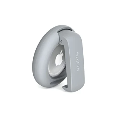 Belkin AirTag Case with Clip, Secure Holder Protective Cover Key Chain, Ring for Apple Scratch Resistance Accessory Light grey