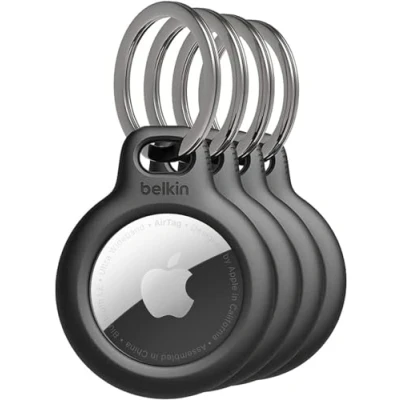 Belkin AirTag Case with Key Ring (Secure Holder Protective Cover for Air Tag Scratch Resistance Accessory) 4 pack, Black