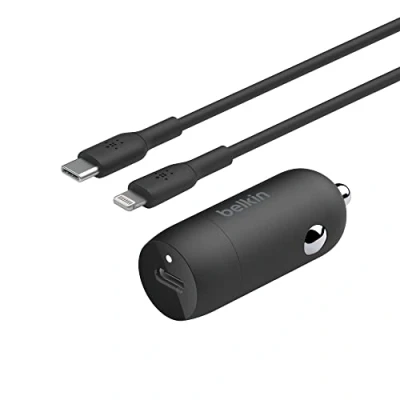 Belkin BOOST↑CHARGE™ 30W Fast Car Charger, Compact Design w/USB C Power Delivery Port, USB to Lightning Cable Included, Universal Compatibility for iPhone 14 Series, iPad, and More Black