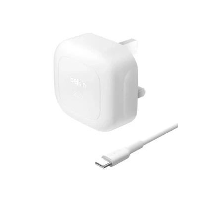 FAST CHARGING TECHNOLOGY: Our Cubic Wall Charger supports fast charging of various devices, rapidly charging an iPhone 15 Pro from 0-50% in just 25 minutes or a Samsung S23 in 30 minutes. Spend less time charging and more time connected to your day. 20W SINGLE-PORT CHARGE: For the best charging performance possible, this 20W charger supports charging of single devices including smartphones, tablets, power banks, and more from Samsung, Apple, Google, Nintendo Switch, and other major brands. INTEGRATED USB PD 3.1 CHIPSET: This Samsung and iPhone charger is USB-C PD 3.1 certified with integrated USB Power Delivery 3.1, meaning it can deliver a safe, high-power charge to your compatible device while reducing the heat output. DURABLE & TRAVEL READY: This Belkin Wall Charger is made with durability in mind and travel-ready design. Compact and lightweight, it's the perfect charger for home, office, or travel with a 1 meter USB-C to USB-C Cable included. STAY PROTECTED: This compact wall charger has been subjected to a minimum of 25 different reliability tests, ensuring you get a safe and powerful charge to your devices with overcharge protection for assured quality and compatibility. SUSTAINABLY MADE + 2-YEAR WARRANTY: BoostCharge 20W Cubic Wall Charger is made with post-consumer recycled materials and 100% plastic-free packaging. Plus, maintain peace of mind with a 2-year warranty and Connected Equipment Warranty (CEW) up to £1,500.