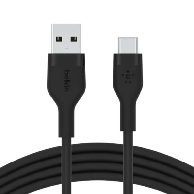 Belkin BoostCharge Flex silicone USB C charger cable, IF certified type A to charging cable for iPhone 16, 15, Galaxy S24, S23, iPad, MacBook, Note, Pixel and more 2m, black