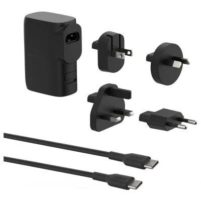 - Juice-up your phone at home or on the go with this Belkin 25 W charger - It's got an integrated 5000 mAh power bank, so you can keep charging without a socket - The USB Type-C and USB ports mean that you can top up 2 devices at the same time - It comes with 4 international adapters, so you can keep you battery full around the globe