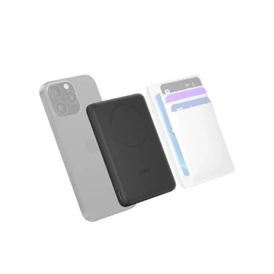 7.5W FAST CHARGING FOR YOUR DEVICES: This portable battery pack with 5,000mAh cell capacity fast charges your iPhone and AirPods simultaneously without the cable clutter.* Charge the iPhone 12 Series and later, Pixel 10, Galaxy, a tablet, and more. SIMULTANEOUS CHARGING: With a 2 ft./60cm USB C to USB C cable included, this BoostCharge power bank lets you charge 2 devices at once. Charge one phone wirelessly while plugging the USB C cable into a second device to charge simultaneously. ULTRA-SLIM DESIGN FOR EASY PORTABILITY: This power bank is made incredibly slim, making it easy to carry in your pocket or bag for convenient on-the-go charging. Its lightweight design makes it ideal for travel, school, or work. MAGNETIC RING + UNIVERSAL USB C COMPATIBILITY: A magnetic ring securely attaches the power bank to your compatible device while it charges. It's compatible with all USB C devices, including smartphones and earbuds. You can also attach your magnetic accessories with ease, such as magnetic wallets or pop-sockets. DURABLE AND TRAVEL READY: Pre-charged and ready to use, our portable chargers are designed with durability and portability in mind. Its premium metal finish complements a slim design with thermal release, and it complies with TSA airline safety standards. POWER PASS-THRU CHARGING: Use this power bank as a wireless charging pad, allowing it to charge while you're not on the go, but placing your phone on the plugged in power bank to charge both and reduce the number of chargers you use. SMARTPROTECT FOR SAFETY AND RELIABILITY: With Belkin SmartProtect, you can ensure device safety with advanced protection features including overheat protection and output regulation to keep your power bank and connected devices safe during charging. SUSTAINABLY MADE + 2-YEAR COVERAGE: This convenient power bank is made of 85% PCR materials and comes in plastic-free packaging.** And you can purchase with peace of mind, as it comes with 2-year coverage and a £1500 Connected Equipment Warranty.***