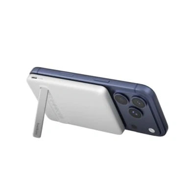 Belkin BoostCharge Portable Charger Qi2 15W, Slim Magnetic Power Bank 5000mAh with Kickstand, USB C Cable Included, Fast Charging Battery Pack for iPhone, AirPods, Galaxy, Pixel, iPad & More White