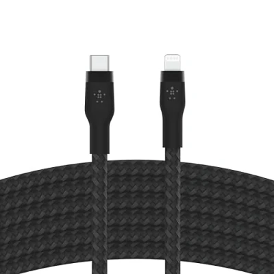 Belkin BoostCharge Pro Flex Braided USB Type C to Lightning Cable (2M/6.6ft), MFi Certified 20W Fast Charging PD Power Delivery for iPhone 14/14 Plus, 13, 12, Pro, Max, Mini, SE, iPad and More Black