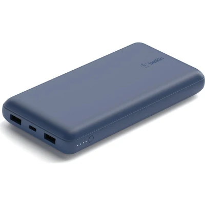 20000 mAh, 15 W, 3 devices Belkin BPB012btBL. Battery capacity: 20000 mAh. USB Type-A output ports: 2, USB Type-C ports quantity: 1. Total output power: 15 W. Product colour: Blue On-the-Go Power Plug into a powerful, portable charge with our Power Bank 20K. It provides power through its USB-C port and dual USB-A ports, allowing you to charge up to three devices at the same time. 20,000 mAH of power provides over 75 additional hours of battery life for your devices, so you can stay connected longer no matter where you are. Available in 3 stylish colors, this compact power bank also comes with a USB-A to USB-C cable for immediate, out of box use. Up to 78 Hours of Power Keep on connecting, streaming, and playing. Our Power Bank provides an additional 78 hours of extended battery life for your iPhone or Galaxy device Power 3 Devices Plug into portable power for up to three devices at the same time with its USB-C port and 2 USB-A ports. Cable Included Start charging immediately. Our Power Bank comes with a USB-A to USB-C cable so you can start charging right out of the box. LED Indicator Light LED battery indicator lights let you know when it’s time to charge or when you’re good to go. 2 years Design LED indicators Battery level Charger compatibility Mobile phone/Smartphone, Tablet Product colour Blue Number of simultaneously connected devices (max) 3 Performance Wireless charging No Battery capacity 20000 mAh Charging source USB Power Total output power 15 W Ports & interfaces USB Type-A connector Yes USB Type-C ports quantity 1 USB Type-C connector Yes USB A output ports 2 Weight & dimensions Cable length 0.15 m Weight 439.9 g Packaging data Quantity per pack 1 pc(s) Packaging content Cables included USB Type-A to USB Type-C Technical details Harmonized System (HS) code 85078000
