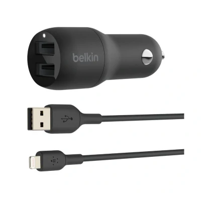 AmazonThe Belkin Difference: Pioneer in technology and innovation for over 35 years 24-Watt Dual Port USB-A Car Charger (12W per port) Charge two devices at the same time in your car while on-the-go Included 3-foot Lightning Cable charges iPhone, iPad, and AirPods models with Lightning connector, including iPhone 14, iPhone 13 and 12 Series, iPad, iPad Air, iPad mini, AirPods and more