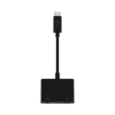 Listen and charge at the same time with the Belkin F7U080btBLK Dual USB-C Aux and Charge Adapter. Featuring a USB-C and audio port, it lets you enjoy your playlists without draining your battery.Plug in your 3.5 mm headphones or speakers at home, in the car or even on the go.