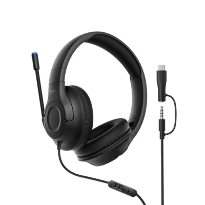 Belkin Gaming Inspire Kids Wired Headphones with USB C Dongle, Adjustable Boom Microphone, 85dB Safe Volume Limit for Nintendo Switch 2, iPhone 16, Samsung Galaxy S25, Tablet, Ideal Travel Black