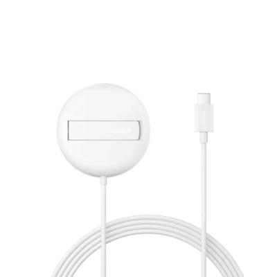 Belkin Magnetic Wireless Charging Pad 15W with Pop Up Stand MagSafe Compatible Certified Qi2 Charger for iPhone 16 Series, Samsung Galaxy S25 AirPods, & More (No PSU) White