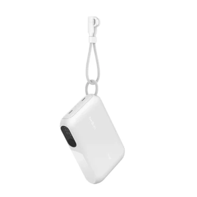 Belkin Portable Charger, USB C Power Bank 10K 10,000mAh w/ 2 Ports, Slim, Display Shows Battery Level, 20W for iPhone 16, 15 Series, Samsung Galaxy S25, S24, Pixel 9, iPad, & More White