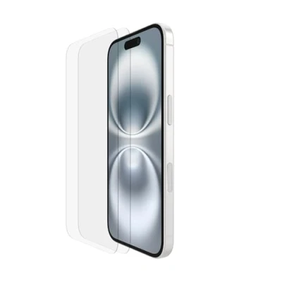 ADVANCED IMPACT PROTECTION: Protect your new iPhone 16 with slim, high-quality Japanese tempered glass – tested and proven to provide a superior level of edge-to-edge protection against drops, impacts, and other daily wear and tear SUPERIOR SCRATCH RESISTANCE: Proven to carry a hardness rating of 9H after rigorous testing, this ScreenForce TemperedGlass screen protector provides your iPhone the highest level of scratch protection available ULTRA-SLIM DESIGN: TemperedGlass boasts a super-thin design of just 0.33mm thin to ensure a flawless tactile response; this means touchscreen sensitivity is never compromised CRYSTAL CLEAR: Extend the lifetime of your screen protector, as the glass contains an antimicrobial treatment to prevent discoloration; Plus, your screen's resolution and color are projected accurately through the tempered glass screen protector FULL SCREEN COVERAGE: 2.5D edges are compatible with most iPhone cases and keep your entire phone screen protected without compromising touch sensitivity or visual clarity; Your phone's screen remains covered even when dropped on its edge EASY ALIGN FRAME INCLUDED: Applying this screen protector to your phone from the comfort of your home is made easy with the included Easy Align Frame; And with the convenience of a 2-pack, you can enjoy double the longevity SUSTAINABLY MADE: This screen protector's packaging is made from 100% recycled plastic for sustainable, environmentally friendly packaging ADDITIONAL MANUFACTURER’S WARRANTY: Our Belkin screen protectors are always built to last, with this screen cover being backed by an additional manufacturer’s warranty to ensure further peace of mind.