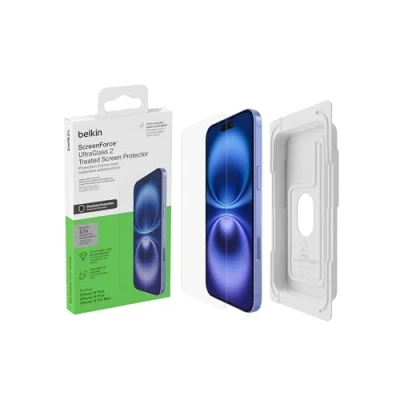 2.7X THE STRENGTH OF TEMPERED GLASS: Get top-of-the-line protection with first-of-its-kind UltraGlass 2; This double strengthened glass is tested and proven to have up to 2.7x better* drop protection than tempered glass, plus better daily wear and tear SUPERIOR SCRATCH RESISTANCE: Proven to carry a hardness rating of 9H after rigorous testing, this ScreenForce UltraGlass 2 screen protector provides your iPhone 14 Pro Max the highest level of scratch protection available ULTRA-SLIM, ULTRA-PROTECTED: At just 0.29mm, this screen protector is among the thinnest in the Belkin collection, boasting one of the best thinness-to-strength ratios on the market; Its multi-layered protection is so thin, you can barely tell it’s there FULL SCREEN COVERAGE: 2.5D edges are compatible with iPhone case and keep your entire phone screen protected without compromising touch sensitivity or visual clarity; Your phone's screen remains covered even when dropped on its edge CRYSTAL CLEAR: Extend the lifetime of your screen protector, as the glass contains an antimicrobial treatment to prevent discoloration; Plus, your screen's resolution and color are projected accurately through the tempered glass screen protector EASY ALIGN TRAY INCLUDED: Applying this screen protector to your phone from the comfort of your home is made easy with the included Easy Align tray; Application instructions included LIMITED LIFETIME WARRANTY: Our Belkin screen protectors are always built to last, with this screen cover being backed by a limited lifetime warranty to ensure further peace of mind SUSTAINABLY MADE: This screen protector's packaging is made from 100% recycled plastic for sustainable, environmentally friendly packaging