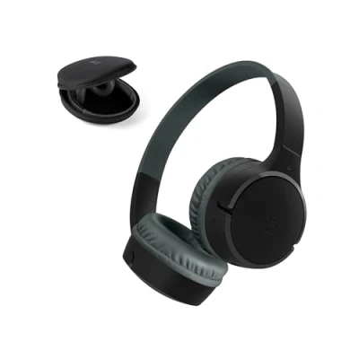 Belkin SoundForm Mini Kids Wireless Headphones with Built In Microphone, 30H of Playback Time, & Fun Stickers Over Ear Headsets for Online Learning, School, Travel, iPhone, iPad, Galaxy Black