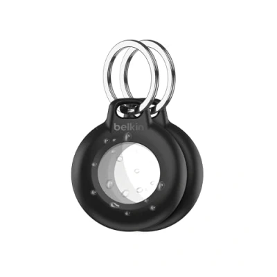 Belkin Waterproof Apple AirTag Secure Holder with Key Ring, Durable Scratch Resistant Case, Protective Keychain Accessory for Keys, Pets, Luggage, Backpacks, and More Black (2 pack)