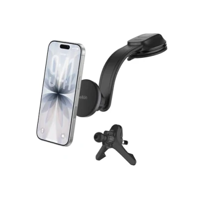 Belkin Wireless Car Charger, Magnetic Vent Mount & Dash with USB C Cable, MagSafe Compatible Fast Charging for iPhone 17, Galaxy S25, Pixelsnap, More Qi2 Travel Accessories Black