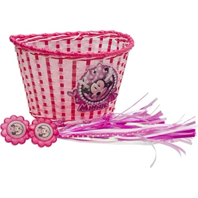 Recommended for ages 3+ Handlebar basket and matching streamers Fits most bikes, trikes and scooters Includes straps for attachment 3D molded basket with translucent, glitter-infused material.Officially licensed Minnie Mouse merchandise