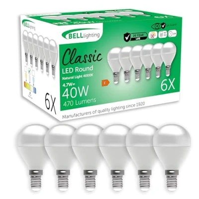 BELL Lighting E14 Small Edison Screw Cap Non Dimmable Light Bulb LED Golf Ball 6 Pack Natural White 4000K 470 Lumen 4.7W Energy Saving Round 40W Lamp Equivalent