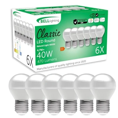 BELL Lighting E27 Edison Screw Cap Dimmable Light Bulb LED Golf Ball 6 Pack Natural White 4000K 470 Lumen 4.7W Energy Saving Round 40W Lamp Equivalent