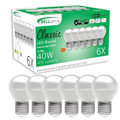 BELL Lighting E27 Edison Screw Cap Non Dimmable Light Bulb LED Golf Ball 6 Pack Natural White 4000K 470 Lumen 4.7W Energy Saving Round 40W Lamp Equivalent