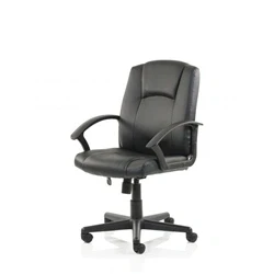 Contoured backrest and seat leather panels. Defined shoulder and headrest support. One-touch tension adjustable tilt and lock action. Strong textured pu arms. Leather contact upholstery.