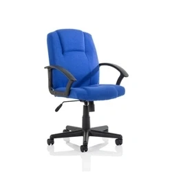 Contoured backrest and seat fabric panels. Defined shoulder and headrest support. One-touch tension adjustable tilt and lock action. Strong textured pu arms.