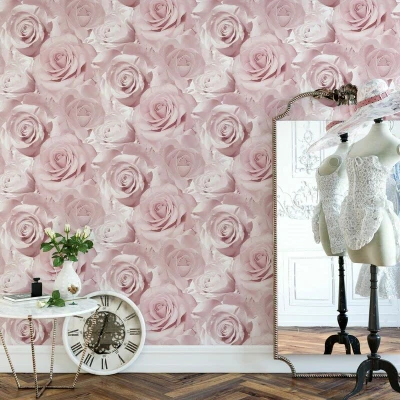 ManoManoGeneral description Muriva Bella Soft Pink Flower Rose Bloom Wallpaper features large rose blooms in various shades of soft pink, creating a sophisticated floral wall effect. The wallpaper has a smooth, flat finish and a 3D effect once applied to the wall, making it perfect for a feature wall or for covering an entire room. Technical specifications Dimensions: 10m x 0.53m Pattern repeat: 26.5cm Washable Wet removable Satisfactory lightfastness Installation Easy to apply Paste the paper Offset match