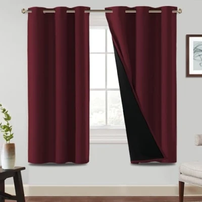 BellaHills 100% Blackout Curtains Eyelet Thermal Insulated for Living Room Heat and Full Light Blocking Window Treatments with Black Liner 2 Panels, 46 x 72 Inch, Burgundy