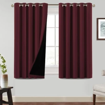 BellaHills 100% Blackout Curtains Eyelet Thermal Insulated for Living Room Heat and Full Light Blocking Window Treatments with Black Liner 2 Panels, 66 x 54 Inch, Burgundy