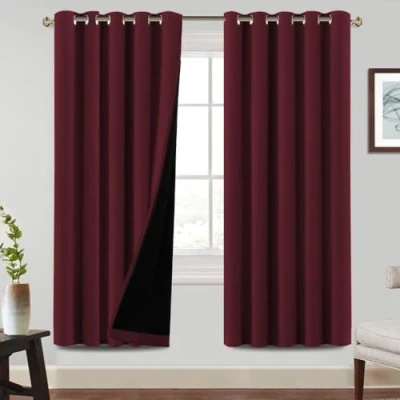 BellaHills 100% Blackout Curtains Eyelet Thermal Insulated for Living Room Heat and Full Light Blocking Window Treatments with Black Liner 2 Panels, 66 x 72 Inch, Burgundy