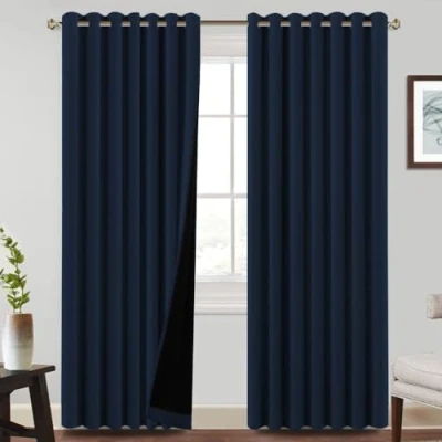 BellaHills 100% Blackout Curtains Eyelet Thermal Insulated for Living Room Heat and Full Light Blocking Window Treatments with Black Liner 2 Panels, 90 x Inch, Navy
