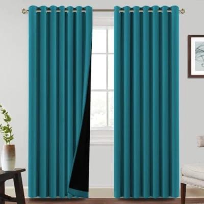 BellaHills 100% Blackout Curtains Eyelet Thermal Insulated for Living Room Heat and Full Light Blocking Window Treatments with Black Liner 2 Panels, 90 x Inch, Turquoise Blue