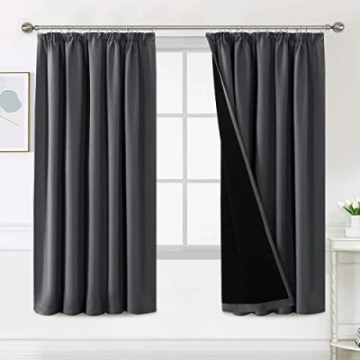 PAIR SOLD: PENCIL PLEATED TOP. 2 panels in package. Each panel measures: 46"W x 72"L|Set measures: 92"W x 72"L.Quality fabric with black liner feels soft and heavy. There are many colours to suit any style of furnishing. 100% BLACKOUT: These magic solid curtain panels are sewn with black liner backing, definitely can block out 100% sunlight and UV ray, turn day into night, enjoy your sweet sleeping and protect your furniture from color fading, providing privacy in your place. MULTIPLE FUNCTIONS: These soft and durable window treatment panels are functional and fashionable, high performance on thermal insulated, room darkening, noise reducing, energy saving / efficiency and privacy protection. UNIQUE HOME DECOR: These classic curtain panels will decorate your rooms with new great effect, suits for contemporary, traditional, vintage rustic, victorian home styles. No chemical coating, no formaldehyde, ECO-friendly, bring harmonious to your family. EASY CARE: Machine washable for easy care and maintenance, use only non-chlorine bleach when needed, tumble dry low and warm iron as needed.