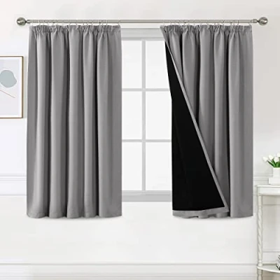 PAIR SOLD: PENCIL PLEATED TOP. 2 panels in package. Each panel measures: 66"W x 54"L|Set measures: 132"W x 54"L.Quality fabric with black liner feels soft and heavy. There are many colours to suit any style of furnishing. 100% BLACKOUT: These magic solid curtain panels are sewn with black liner backing, definitely can block out 100% sunlight and UV ray, turn day into night, enjoy your sweet sleeping and protect your furniture from color fading, providing privacy in your place. MULTIPLE FUNCTIONS: These soft and durable window treatment panels are functional and fashionable, high performance on thermal insulated, room darkening, noise reducing, energy saving / efficiency and privacy protection. UNIQUE HOME DECOR: These classic curtain panels will decorate your rooms with new great effect, suits for contemporary, traditional, vintage rustic, victorian home styles. No chemical coating, no formaldehyde, ECO-friendly, bring harmonious to your family. EASY CARE: Machine washable for easy care and maintenance, use only non-chlorine bleach when needed, tumble dry low and warm iron as needed.