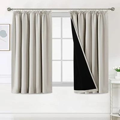 PAIR SOLD: PENCIL PLEATED TOP. 2 panels in package. Each panel measures: 66"W x 54"L|Set measures: 132"W x 54"L.Quality fabric with black liner feels soft and heavy. There are many colours to suit any style of furnishing. 100% BLACKOUT: These magic solid curtain panels are sewn with black liner backing, definitely can block out 100% sunlight and UV ray, turn day into night, enjoy your sweet sleeping and protect your furniture from color fading, providing privacy in your place. MULTIPLE FUNCTIONS: These soft and durable window treatment panels are functional and fashionable, high performance on thermal insulated, room darkening, noise reducing, energy saving / efficiency and privacy protection. UNIQUE HOME DECOR: These classic curtain panels will decorate your rooms with new great effect, suits for contemporary, traditional, vintage rustic, victorian home styles. No chemical coating, no formaldehyde, ECO-friendly, bring harmonious to your family. EASY CARE: Machine washable for easy care and maintenance, use only non-chlorine bleach when needed, tumble dry low and warm iron as needed.