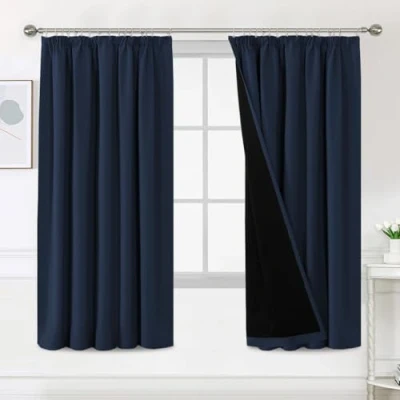 BellaHills 100% Blackout Curtains for Bedroom Thermal Insulated & Drapes Pencil Pleat Living Room with Black Liner 2 Panels Set, 66 x 72 Inch, Navy