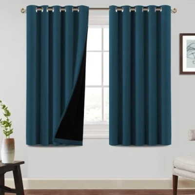 READY MADE: 2 panels per package. Each panel measures 66" wide x 54" long (total width is 132") , with 10 anti-rust grommets which fit curtain rods less than 1.6" diameter BLACKOUT EFFECT: With black liner on backing, curtains can definitely block out 100% bright sunlight and UV ray,bring you sound dreams and protect your furniture from color fading MULTIPLE FUNCTIONS: Made by advanced triple weave technology, high-density blackout fabric curtains can high performance on thermal insulated, room darkening, noise reducing and privacy protection UNIQUE HOME DECOR: These classic curtain panels will decorate your rooms with new great effect, suits for contemporary, traditional, vintage rustic, victorian home styles. No chemical coating, no formaldehyde, bring harmonious to your family MACHINE WASHABLE: Machine washable for easy care and maintenance, use only non-chlorine bleach when needed, tumble dry low and warm iron as needed