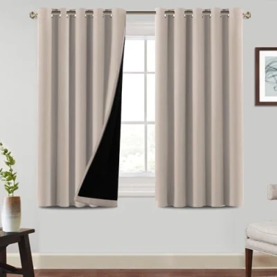 READY MADE: 2 panels per package. Each panel measures 66" wide x 54" long (the drop measures from the curtain top to the bottom), with 10 anti-rust grommets which fit curtain rods less than 1.6" diameter BLACKOUT EFFECT: With black liner on backing, curtains can definitely block out 100% bright sunlight and UV ray,bring you sound dreams and protect your furniture from color fading MULTIPLE FUNCTIONS: Made by advanced triple weave technology, high-density blackout fabric curtains can high performance on thermal insulated, room darkening, noise reducing and privacy protection UNIQUE HOME DECOR: These classic curtain panels will decorate your rooms with new great effect, suits for contemporary, traditional, vintage rustic, victorian home styles. No chemical coating, no formaldehyde, bring harmonious to your family MACHINE WASHABLE: Machine washable for easy care and maintenance, use only non-chlorine bleach when needed, tumble dry low and warm iron as needed
