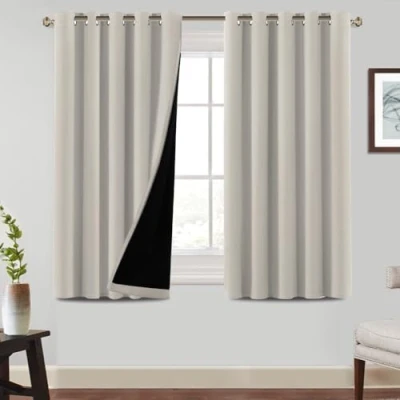 READY MADE: 2 panels per package. Each panel measures 66" wide x 54" long (the drop measures from the curtain top to the bottom), with 10 anti-rust grommets which fit curtain rods less than 1.6" diameter BLACKOUT EFFECT: With black liner on backing, curtains can definitely block out 100% bright sunlight and UV ray,bring you sound dreams and protect your furniture from color fading MULTIPLE FUNCTIONS: Made by advanced triple weave technology, high-density blackout fabric curtains can high performance on thermal insulated, room darkening, noise reducing and privacy protection UNIQUE HOME DECOR: These classic curtain panels will decorate your rooms with new great effect, suits for contemporary, traditional, vintage rustic, victorian home styles. No chemical coating, no formaldehyde, bring harmonious to your family MACHINE WASHABLE: Machine washable for easy care and maintenance, use only non-chlorine bleach when needed, tumble dry low and warm iron as needed