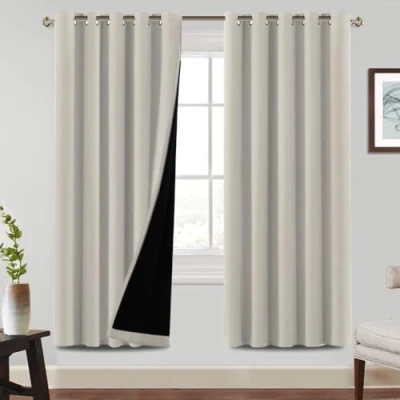 READY MADE: 2 panels per package. Each panel measures 66" wide x 72" long (the drop measures from the curtain top to the bottom), with 10 anti-rust grommets which fit curtain rods less than 1.6" diameter BLACKOUT EFFECT: With black liner on backing, curtains can definitely block out 100% bright sunlight and UV ray,bring you sound dreams and protect your furniture from color fading MULTIPLE FUNCTIONS: Made by advanced triple weave technology, high-density blackout fabric curtains can high performance on thermal insulated, room darkening, noise reducing and privacy protection UNIQUE HOME DECOR: These classic curtain panels will decorate your rooms with new great effect, suits for contemporary, traditional, vintage rustic, victorian home styles. No chemical coating, no formaldehyde, bring harmonious to your family MACHINE WASHABLE: Machine washable for easy care and maintenance, use only non-chlorine bleach when needed, tumble dry low and warm iron as needed