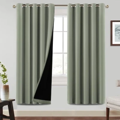 BellaHills 100% Blackout Curtains for Bedroom Thermal Insulated Heat and Full Light Blocking Eyelet Living Room with Black Liner 2 Panels, 66 x 72 Inch, Sage
